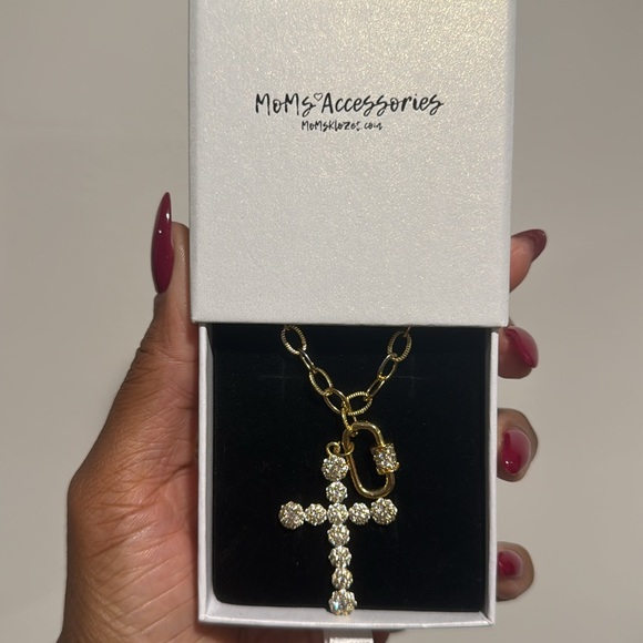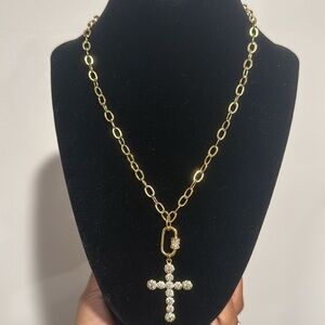 Gorgeous hand kreated by yours truly, stainless steel cross necklace in gold. 18in