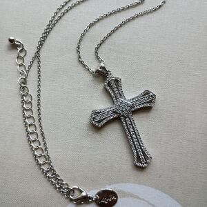 Elegant silver cross pendant necklace with chain. Perfect for any occasion.