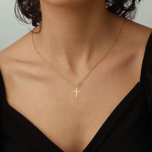 This elegant necklace features a simple gold cross pendant that exudes timeless grace and sophistication. Crafted from high-quality gold plating and brass, the cross is polished to a smooth, radiant finish, emphasizing its classic design. The pendant is suspended from a delicate gold chain, creating a harmonious and understated look. Its minimalist style makes it a versatile piece suitable for both everyday wear and special occasions. Perfect as a personal symbol of faith or as a meaningful gift, this necklace embodies simplicity and elegance, making it a cherished addition to any jewelry collection.