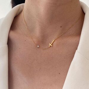 Cross Necklace Sideways Cubic Zirconia Cross Dainty CZ Cross Christian Pendant