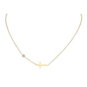 Cross Necklace Sideways Cubic Zirconia Cross Dainty CZ Cross Christian Pendant