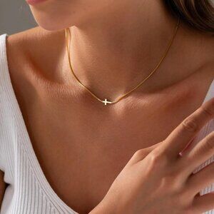 Cross Necklace for Women 14K Gold Silver Plated Dainty Small Cross Pendant Choke