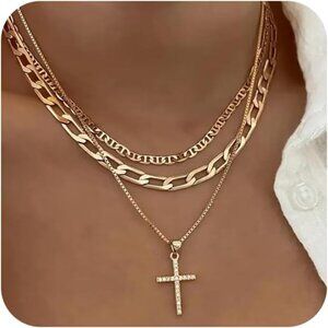 Design:Necklace is an important part of a jewelry wardrobe.Dainty gold layered necklaces consists of a gold flat mariner chain, paperclip choker and a cross necklace