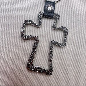 Cross Open-cut Gunmetal Pendant accented with Rhinestone Necklace. Boho Casual