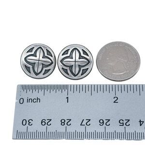 Cross Pattern Button Clip On Earrings | Vintage Sterling Silver 925