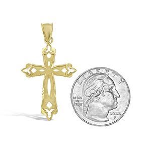 Cross Pendant Charm Diamond Cut 10k Yellow Gold 1.6 inch