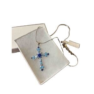 Cross Pendant Necklace with Blue Stones Jewelry 16” Adjustable
