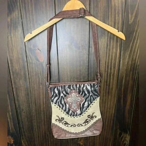 Cross Rhinestone Western Leather Crossbody Bag-Y2K Era
