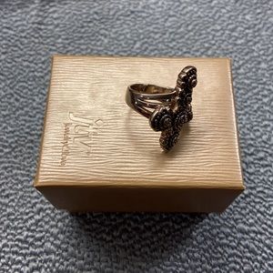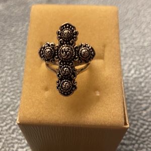 Oxidized Rhodium over Brass Filigree Cross Ring