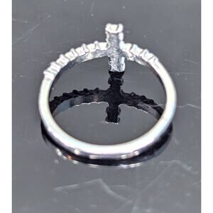 Cross Ring, Silver-tone, Rhinestones, Sideways Cross, Size 6 A0011
