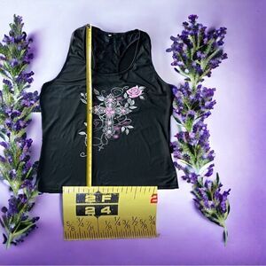 Cross & Roses Design l Black w/ Purple l Tank Top l Lace Racerback l 2X l EUC