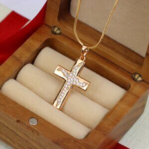 ✔️ Unique textured cross inlay with sparkling stones