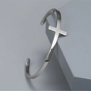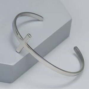 Cross Stainless Steel Bangle Bracelet Geometry Open Cuff Bangle for Men
