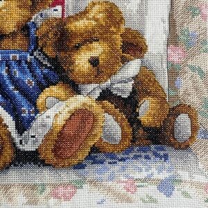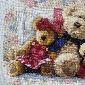 Cross Stitch | A Row Of Love | Family of Teddy Bears finished,completed