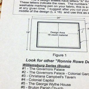 Signed Ronnie Rowe designs cross stitch crafts guide, Williamsburg 1776 Pen and Ink series #5. Not a kit, cross stitch guides only. P&I series. Good good used condition BUT PLEASE NOTE some writing on the cardboard insert from previous use (last photo). Other pages clean.