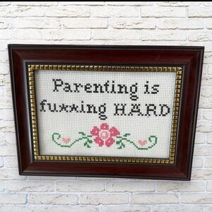 Cross Stitch Handmade Parenting is fuxxing HARD Framed