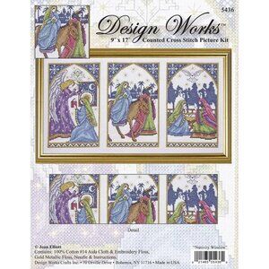 Design Works "Nativity Window" #5436 Model Counted Cross Stitch Kit Brand New Sealed. This counted cross stitch kit features a beautiful nativity scene designed by Joan Elliott. The package includes all necessary materials for completion. The Kit Includes Everything To Get Started (needle, stitching guide, fabric/cloth, Gold metallic floss and Other Needed thread/floss) In Time For Christmas as a Framed 9"X17" Picture. Made in the USA!