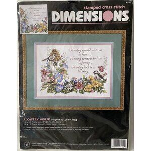 Flowery Verse Sealed Stamped Cross Stitch KIT By Dimension Crafts #3160. Designer: Cyndy Callog. Design Size: 14"x10". Kit you need to work not the finished item.