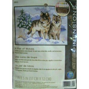 A Pair Of Wolves Counted Cross Stitch Kit By Dimensions #6800. Made In USA. 7 in x 5 in (17 cm x12 cm).