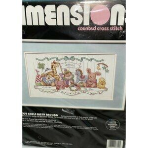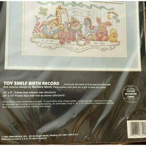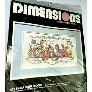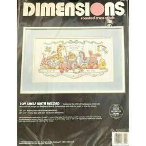 Dimensions Toy Shelf Birth Record #3729 Counted Cross Stitch Kit 16"x9" Vintage USA. Needs to be stitched...not the finished item.
