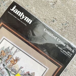 -THE WARY APPROACH: #80-45 (Dated 1990) -Finished size 18x12 -Contains 27-count Even Weave fabric, cotton floss, needle, graph & instructions.