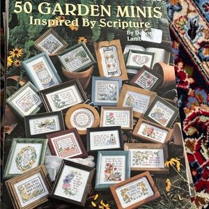 Collection of cross stitch patterns featuring religious themes. Includes designs like The Lord's Prayer and The 23rd Psalm. 2 are booklets that contain multiple patterns