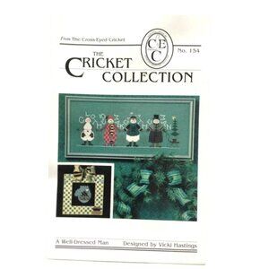 The Cricket Collection 154 A Well-Dress Man Cross Stitch Pattern Vicki Hastings. This cross stitch pattern, designed by Vicki Hastings, features a charming winter scene with festive characters. Ideal for needlework enthusiasts seeking a detailed and engaging project. The pattern is part of the esteemed Cross-Eyed Cricket collection, promising high-quality designs. Stitch Count: 222w x 75h. Used Condition from a collection.