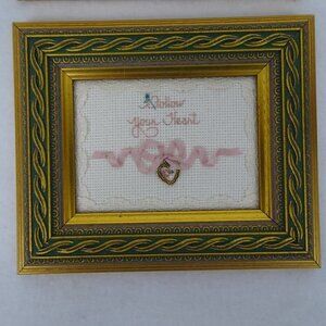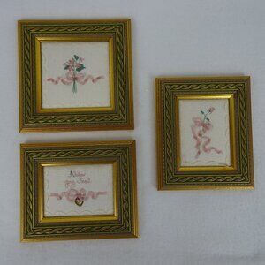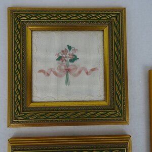 Cross Stitch Pictures Framed Floral Miniature Small Hand Made Vintage Lot of 3