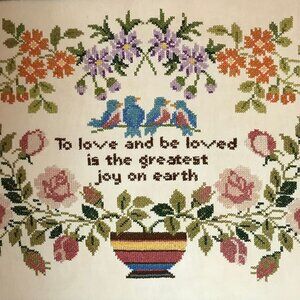 Cross Stitch Wall Art Quote "To Love & Be Loved Is The Greatest Joy.. Handmade