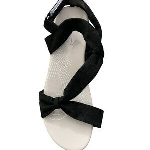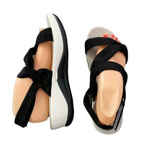 Cross Strap Wedge Sandal Black Faux Suede Sz 9 Hook-And-Loop Close #79F