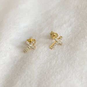 Cross Stud Gold and Diamond earrings 925 Sterling Silver New