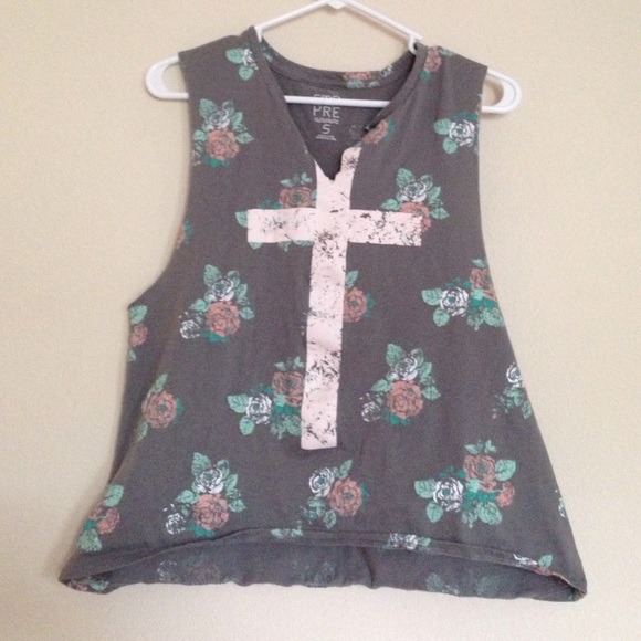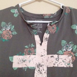 Empyre floral cross top. Looks super cute tied to the side, alone, or layered. I'd love to show a pic of everything on but being 6 months pregnant it wouldn't really do the clothes justice.