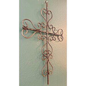 Cross Wrought Iron Hand Forged & Welded Wall Hanging Christian Crucifix 22" x 15". Please see photos for additional information and item particulars.