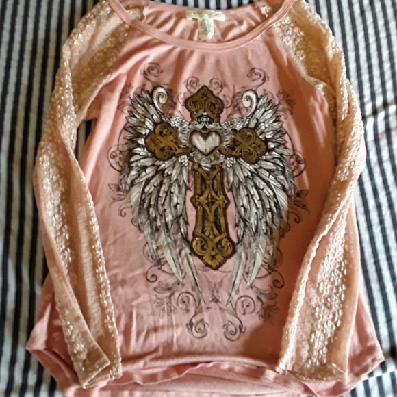 Pink Lace sleeved cross blouse worn once.