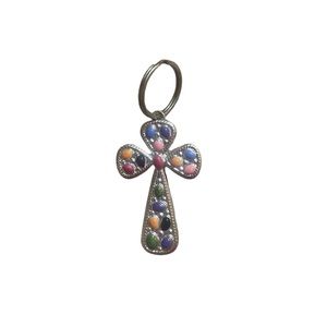 New silver cross keychain w multicolor stones