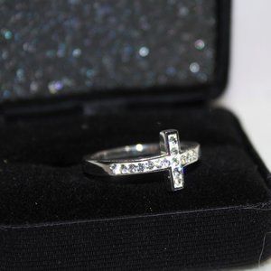Vintage silver plate cross ring with sparkly crystal ring size 8