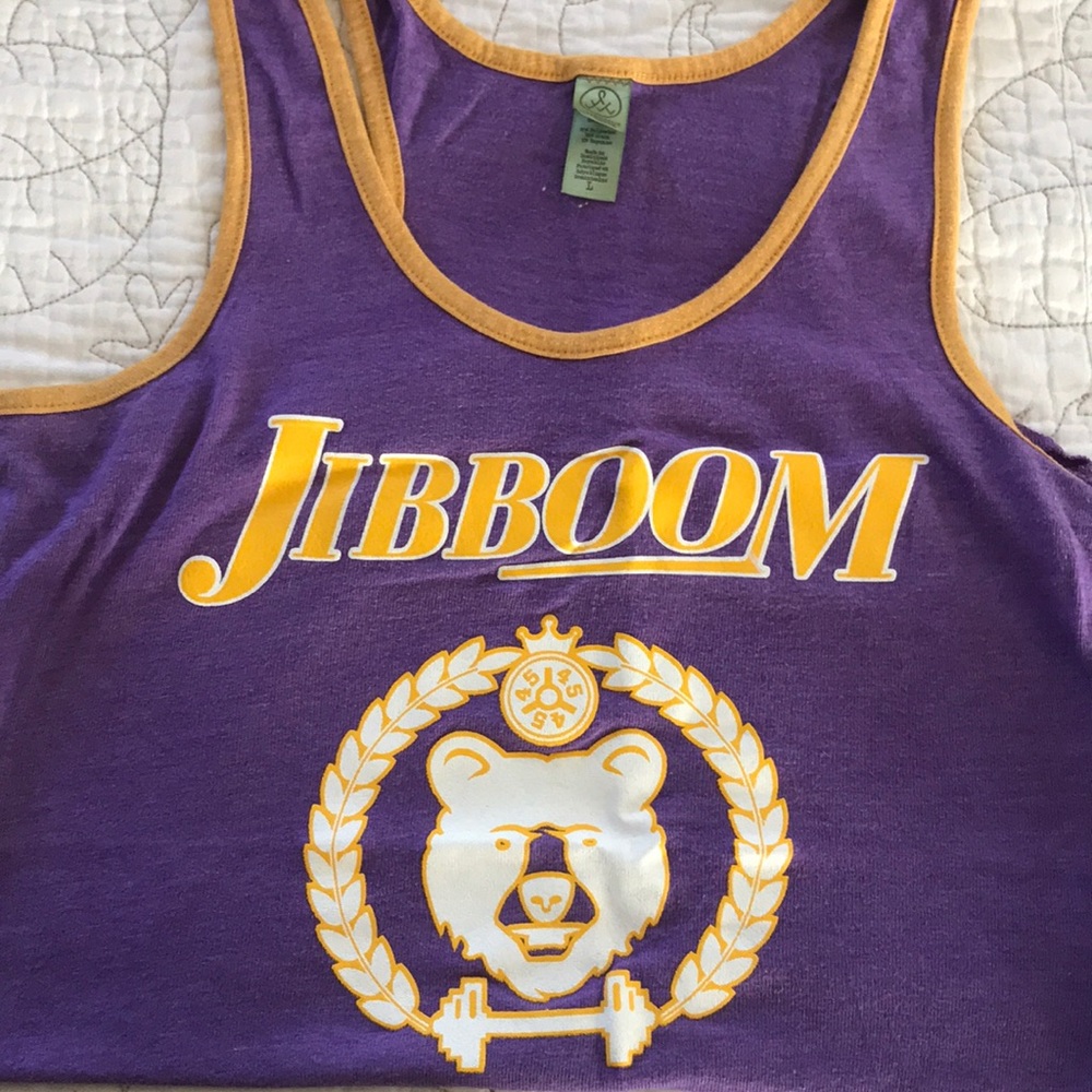 Cute racer back tank from CrossFit Jiboom, which was located in Truckee, Ca. Very cute logo. The back says, C-Rok, which stands for Crystal MacReynolds who competed at Regionals. She was the gym owner and a CrossFit OG originally out of Austin, Tx. Like new condition.