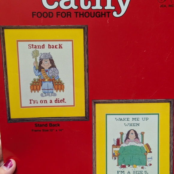 Enjoy crafting with the cross-stitch kit featuring humorous designs. Perfect for adding a touch of fun to your home decor.