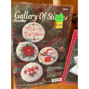 BUCILLA Counted Cross Stitch Kit "MERRY CHRISTMAS" ORNAMENTS Set of 4 #33521
