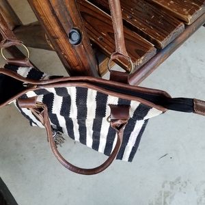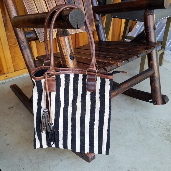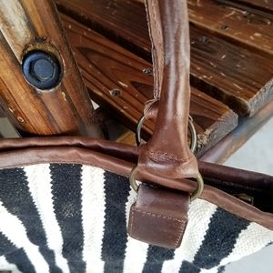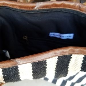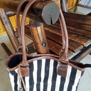 Gently Used, No known flaws, Brand/CrossTree Lane, Color, Black & White with Brown Leather Handles...Has 1 pouch on inside...