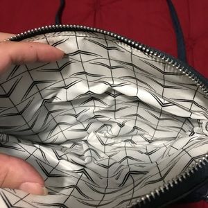 Navy crossbody comes with two different straps... you can dress it up or for everyday great bag two different pockets with zipper used a few times great condition