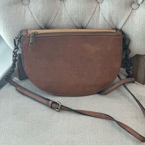 Simply Noelle ratten style material crossbody, suede & leather on the interior, barely used