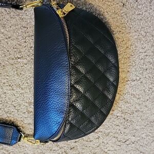 New never used, black quilted/crossbody/ bum bag with guitar strap. Has pockets for credit cards and zip pouch