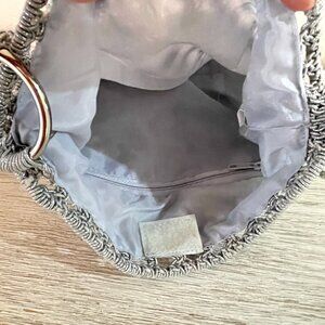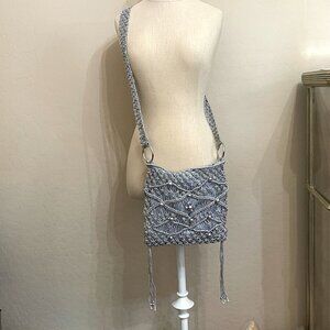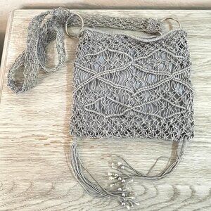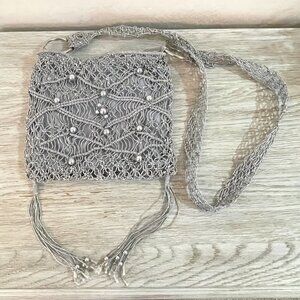 Crossbody Bag Macrame Crochet Beaded Fringe Silver Purse
