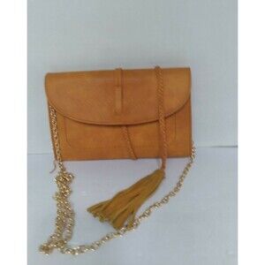Capture effortless style with this mustard yellow crossbody bag. A braided accent strap detail adds a touch of bohemian flair, complemented by a playful tassel. The gold-tone chain strap elevates the look, making it perfect for both casual and dressy occasions. This small purse is ideal for keeping your essentials close at hand while adding a pop of color to your outfit. Envision yourself carrying this bag to a weekend brunch, a music festival, or a casual evening out with friends.
