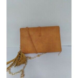 Crossbody Bag Mustard Yellow Chain Strap Tassel Accent Small Purse