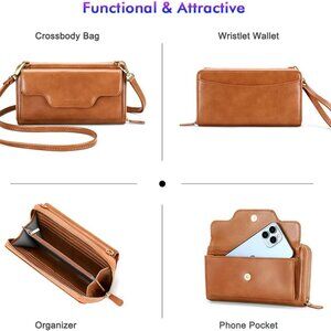 Crossbody Bag PU Leather 8.3x4.7x2.4in RFID Wallet Cell Phone Purse Women