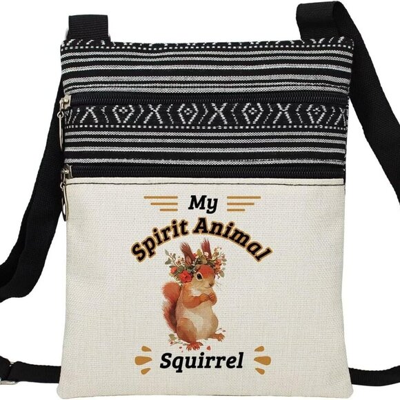Crossbody Bag Squirrel Ethnic Pattern Small Adjustable Shoulder Purse