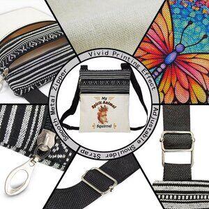 Features: Compact and lightweight polyester crossbody with a playful squirrel and ethnic pattern. Adjustable strap for a comfortable fit, high-quality zipper closures, and a smooth lining. Perfect for carrying essentials like your phone, keys, lip gloss, and cards. The colorful design is eye-catching and adds a pop of personality to any outfit.