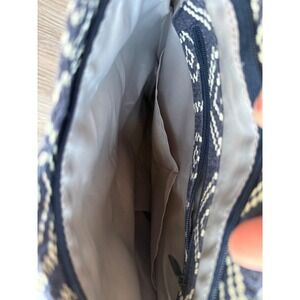 Keywords: crossbody bag, travel purse, shoulder bag, lightweight bag, aztec print, geometric bag, navy blue bag, beige bag, adjustable strap, zippered pocket, casual bag, everyday bag, small crossbody, festival bag